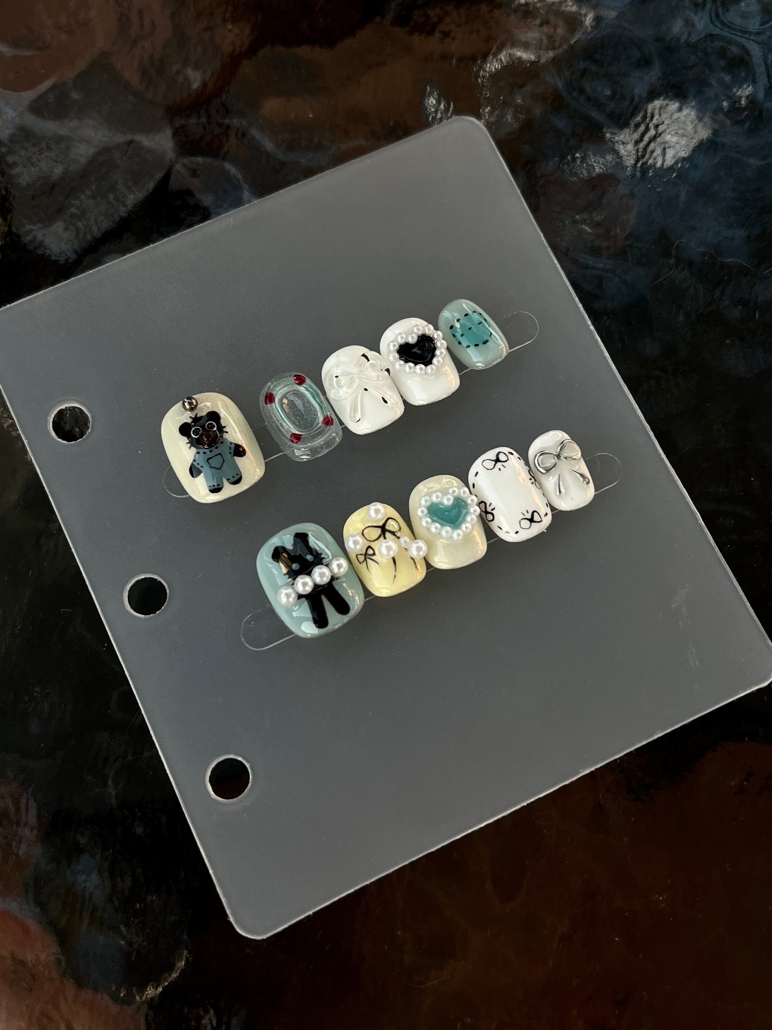 くまさん、リボン、パールにハート、「キュート」がたくさん詰まった、とびきりキュートなネイルチップセット。手元から、毎日をもっとときめく時間に。