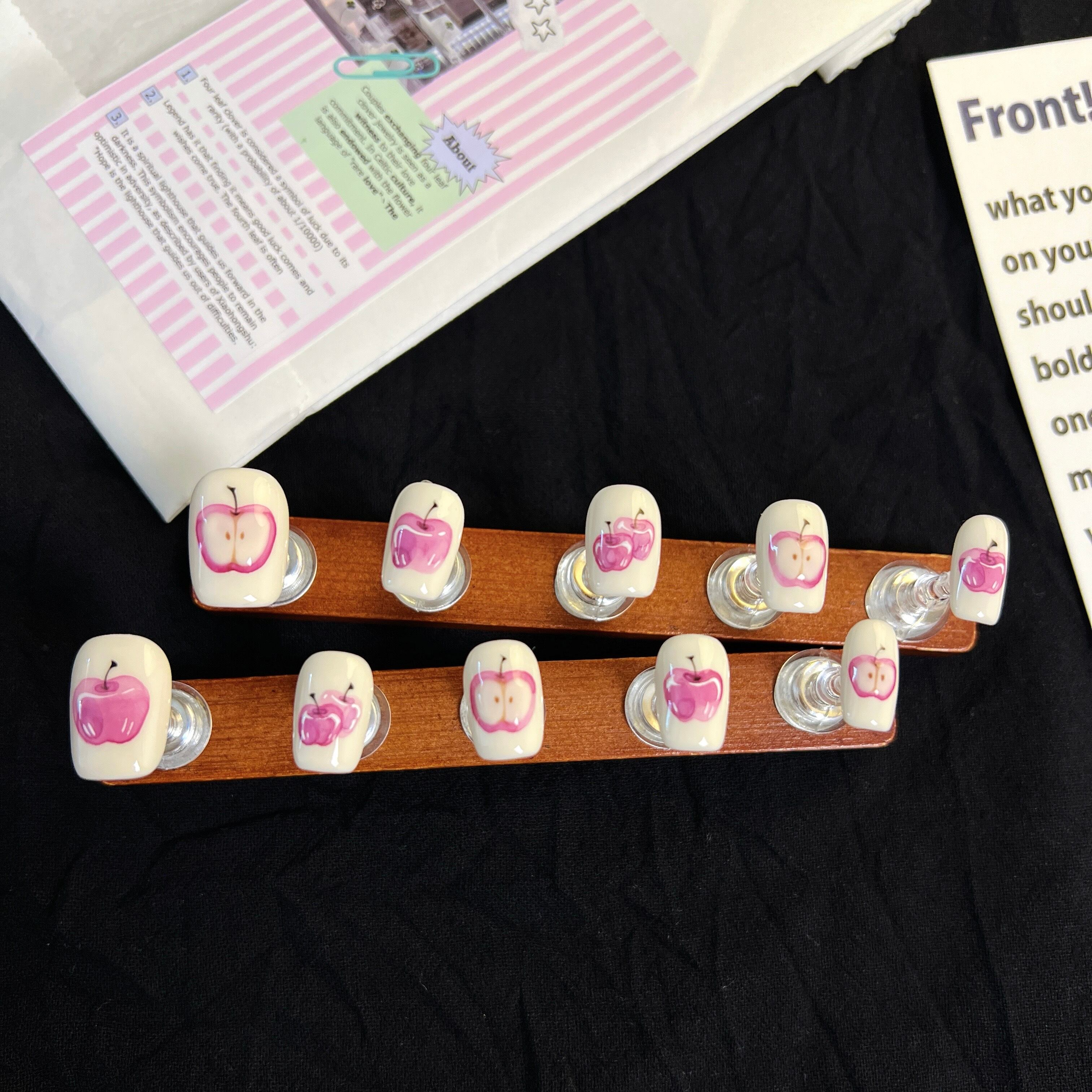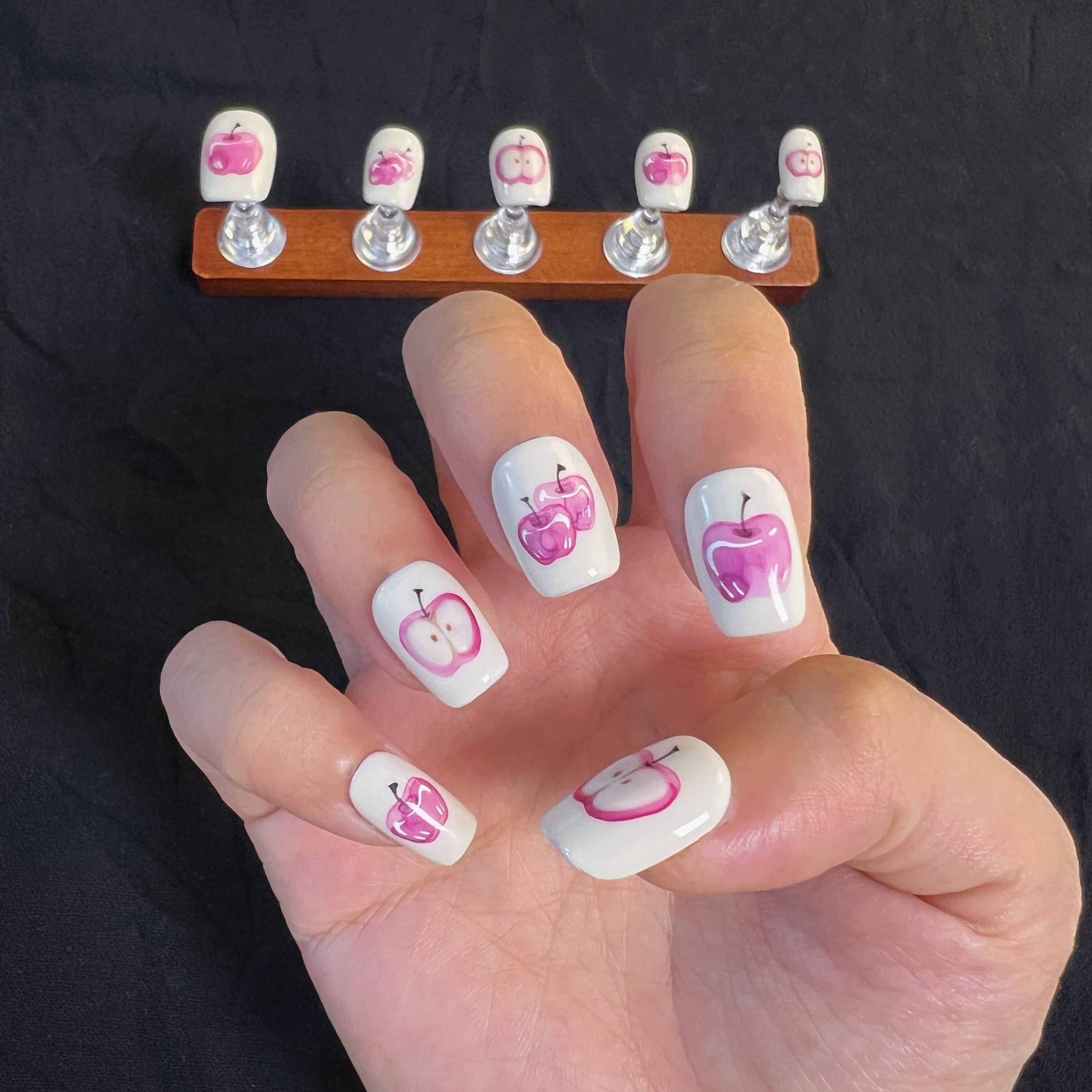 水彩絵みたいにふんわり可愛い、ピンクのりんごが主役で、ときめきが止まらない!白ベースで甘すぎないのも嬉しいポイント。おでかけや写真映えにもぴったり!